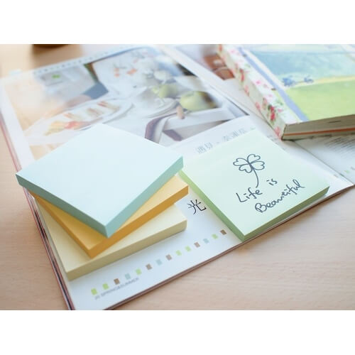 Samolepicí bloček v mixu pastelových barev vyrobený z papíru, který pochází z ekologicky obhospodařovaných lesů. Certifikovaný papír šetrný k přírodě využívá lepidlo na vodní bázi. Lístky jdou snadno nalepit a odlepit, přesto skvěle drží. Nezanechávají stopy po lepidle.